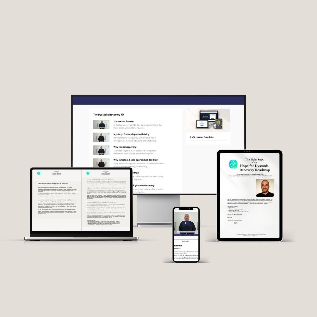 The Dystonia Recovery Kit is a short, structured mini-course created to help you make sense of what’s happening in your body — and why many symptom-only approaches haven’t led to lasting change.